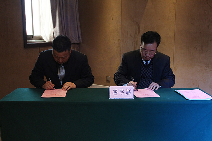 會議尾聲,曹寶良董事長與各縣區(qū)城投公司以及我公司各部室簽訂2018年度目標(biāo)責(zé)任書。