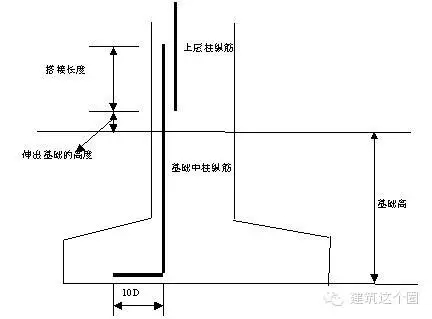 基礎(chǔ)插筋=基礎(chǔ)底板厚度-保護(hù)層+伸入上層的鋼筋長度+Max{10D,200mm}