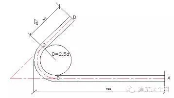 軟件中箍筋計(jì)算時(shí)取的11.9D實(shí)際上是彎鉤加上量度差值的結(jié)果,我們知道彎鉤平直段長度是10D,那么量度差值應(yīng)該是1.9D,下面我們推導(dǎo)一下1.9D這個(gè)量度差值的來歷: