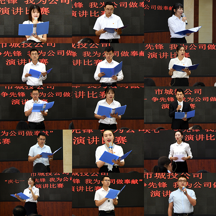 為深入貫徹落實(shí)黨的十九大精神,向黨的98歲華誕獻(xiàn)禮。7月1日上午,市城投公司在城投大廈5樓會(huì)議室舉行“慶七一、爭(zhēng)先鋒、我為公司做奉獻(xiàn)”主題演講比賽。演講比賽由支部宣傳委員、副總經(jīng)理王昱智主持,市國(guó)資委黨委副書記陳靜、市文明辦科長(zhǎng)楊寧應(yīng)邀出席本次活動(dòng)并擔(dān)任評(píng)委,與公司高管組成評(píng)審團(tuán)。來(lái)自各部室及子公司的15名選手參賽,全體員工傾聽(tīng)精彩演講。