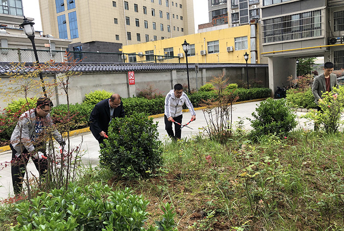 此次活動由第三黨支部書記陳波帶隊,主要針對陽光小區(qū)綠化修剪、苗木除草、施肥澆灌、清除野廣告等。參與活動的黨員、員工分工協(xié)作、相互配合,以認(rèn)真務(wù)實的態(tài)度完成了本次黨建主題實踐活動,達到了預(yù)期的目的。