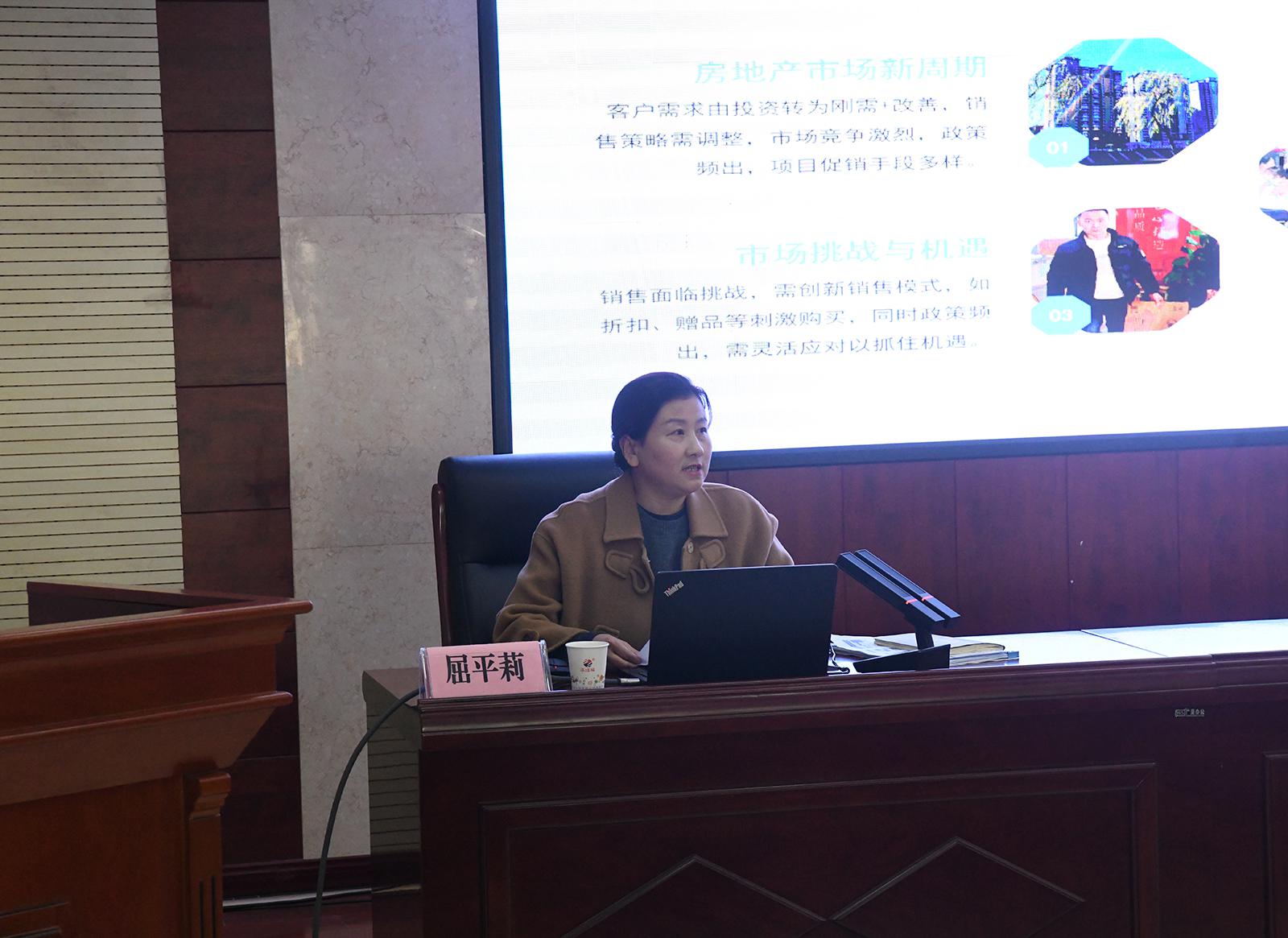 12月13日,市城投公司黨委舉辦第八期“城投大講堂”。商洛丹鶴春曉房產(chǎn)經(jīng)紀(jì)管理有限公司經(jīng)理屈平莉以“國(guó)有房企從業(yè)者如何塑造品牌營(yíng)銷力”為題,結(jié)合房產(chǎn)經(jīng)紀(jì)公司實(shí)際,生動(dòng)形象地講授了房地產(chǎn)行業(yè)現(xiàn)狀、政策及銷售技巧,使大家有了更加全面、深刻的認(rèn)識(shí)。