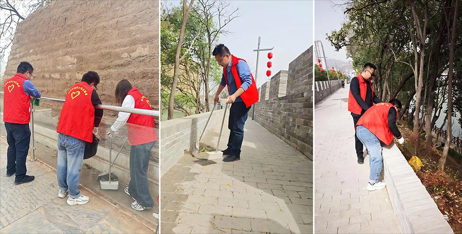 活動當(dāng)日,陽光正好,黨員同志統(tǒng)一身著城投志愿者服裝,精神抖擻地抵達(dá)活動現(xiàn)場。大家手持火鉗、垃圾袋等清潔工具,迅速投入到垃圾清理工作中,無論是道路旁的煙頭、紙屑,還是花叢中的塑料瓶、包裝袋,都沒能逃過大家的“火眼金睛”。在清理過程中,大家還細(xì)致地對垃圾進(jìn)行分類,確保每一片垃圾都能找到正確的歸宿。經(jīng)過數(shù)小時的辛勤勞作,商州故城墻周邊環(huán)境煥然一新。